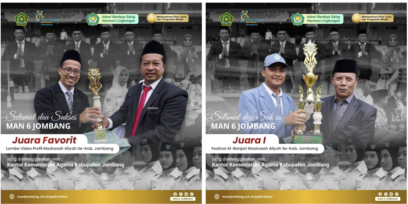 Awal tahun 2025 yang sekaligus sebagai tonggak berdirinya Kementerian Agama menjadi momen yang berharga bagi MAN 6 Jombang kali ini dalam hari jadinya yang ke 79, MAN 6 Jombang berhasil mewarnai dan berprestasi dalam mengisi kegiatan tahunan yang diadakan oleh kementerian Agama Kabupaten Jombang dengan tema Umat Rukun Menuju Indonesia Emas, Juara 1 Banjari tingkat MA dan Juara Favorit Video Profil lembaga berhasil diraih oleh Madrasah yang dipimpin oleh Mr.Misbakhul Arif, M.Pd.I ini. Dalam amanatnya kepala kantor kementerian Agama Kabupaten Jombang menekankan akan pentingnya rasa bersyukur atas rahmat yang diberikan oleh alloh dengan berdirinya Kementerian Agama ini bisa menjadi ruh untuk saling mempersatukan berbagai potensi yang ada di Indonesia tercinta ini. Di kesempatan yang sama Kepala MAN 6 Jombang menekankan akan pentingnya melakukan improvisasi dalam menjalankan kewajiban sebagai Aset negara guna mengembangkan lembaga menjadi rumah besar bersama bagi warga Madrasah.