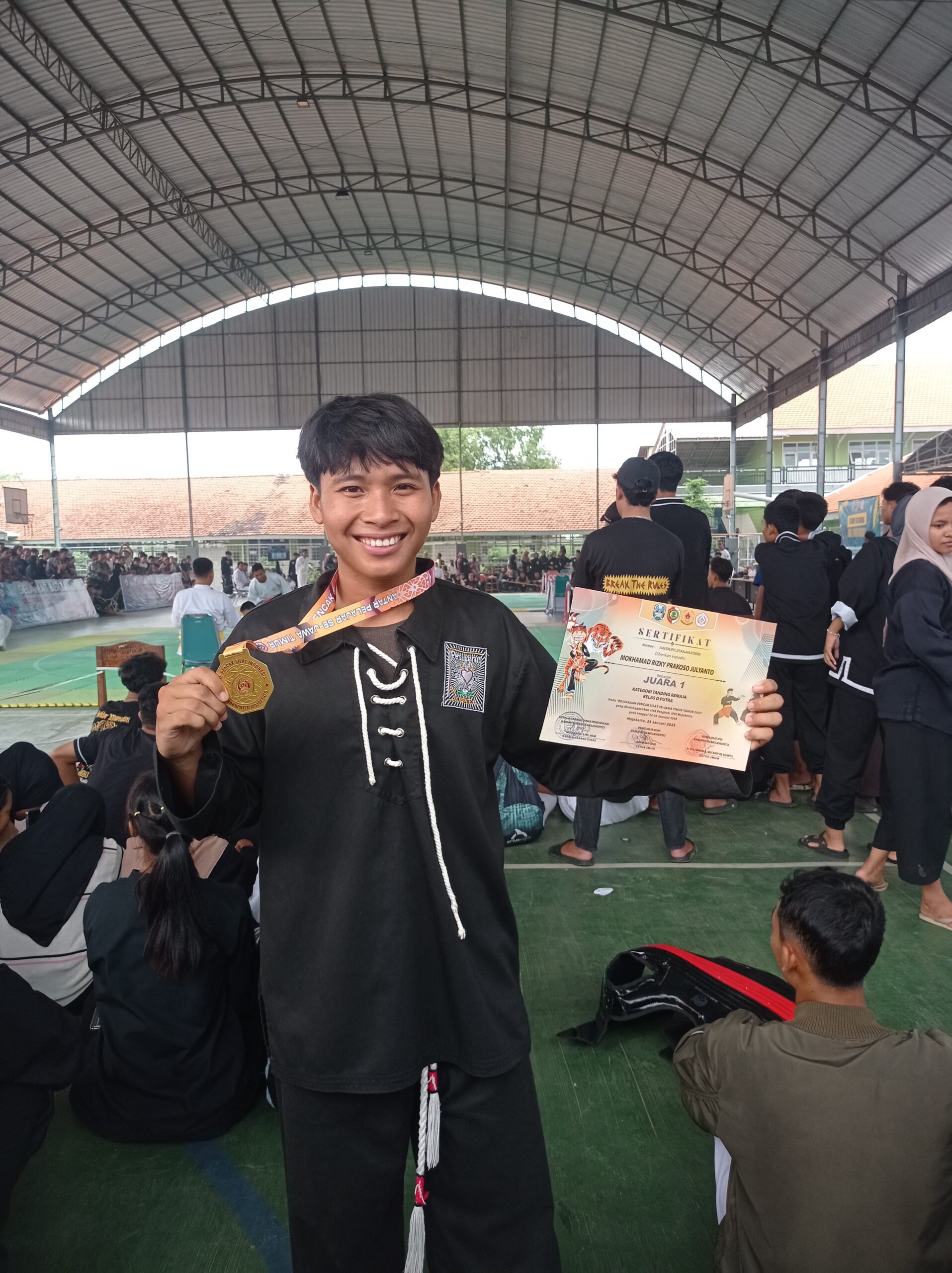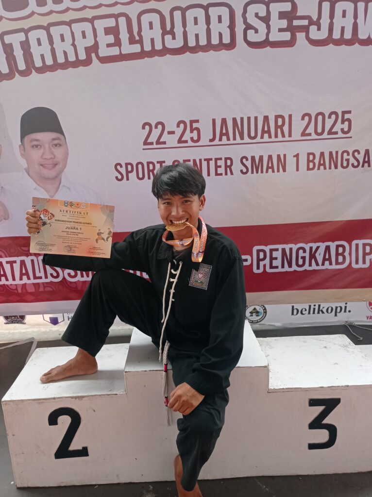 Jombang, 25 Januari 2025 – Kabar membanggakan datang dari MAN 6 Jombang. Salah satu siswa terbaiknya, Mohkamad Rizky Prakoso, kelas 12 C, berhasil menorehkan prestasi gemilang dengan meraih Juara 1 Pencak Silat pada kategori “Tanding Remaja Kelas D Putra”. Ajang bergengsi ini diselenggarakan oleh Pengurus Kabupaten Ikatan Pencak Silat Indonesia (IPSI) Mojokerto pada 22-25 Januari 2025.
