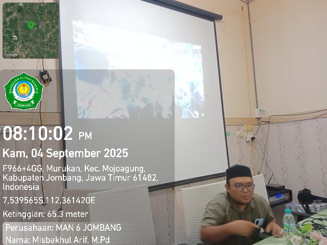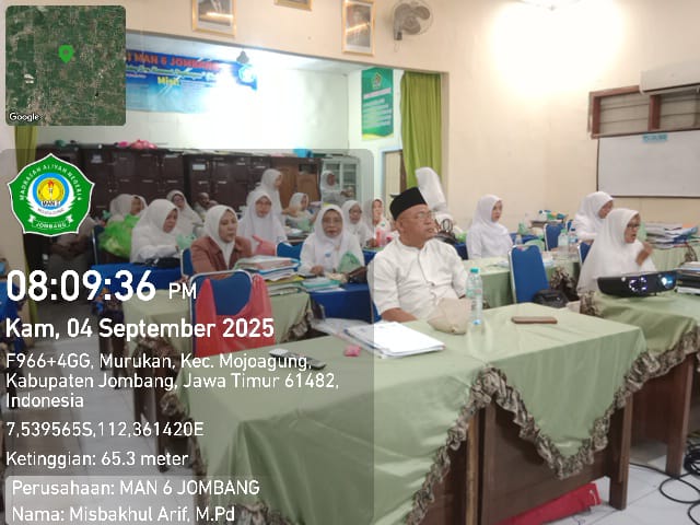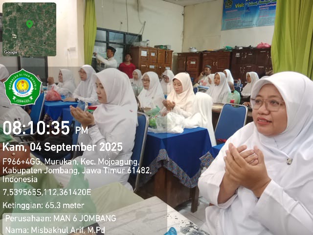 Jombang – Kamis, 4 September 2025, seluruh dewan guru dan tenaga kependidikan Aparatur Sipil Negara (ASN) MAN 6 Jombang turut serta mengikuti Peringatan Maulid Nabi Muhammad SAW Tingkat Kenegaraan Tahun 1447 H yang diselenggarakan secara daring berkumpul dalam 1 tilok yaitu di MAN 6 Jombang mulai pukul 19.00-selesai.