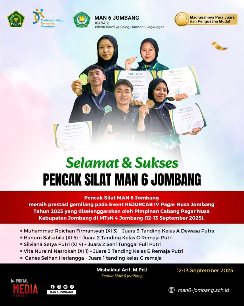 Dengan keberhasilan ini, Pagar Nusa MAN 6 Jombang semakin meneguhkan diri sebagai wadah generasi muda yang berprestasi, berkarakter, sekaligus menjaga warisan budaya bangsa.(Ttk/red)
